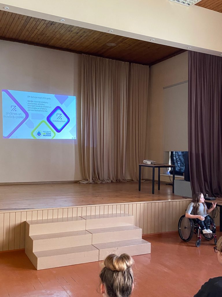 Karjeras dienu ietvaros, Zinātnes un Inovāciju parka pārstāves, Ieva un Kristiāna, 10.oktobrī viesojās Aizputes vidusskolā un 16.oktobrī Aizputes pagasta pamatskolā, kurā 7.-9. un 12.klašu skolēniem pastāstīja par cilvēku ar funkcionāliem traucējumiem pieredzi un izaicinājumiem izglītības ieguvē un darba tirgū, šī brīža esošajām iespējām, kā arī iepazīstināja jauniešus ar nākotnes profesijas un prakses izvēles iespējām.